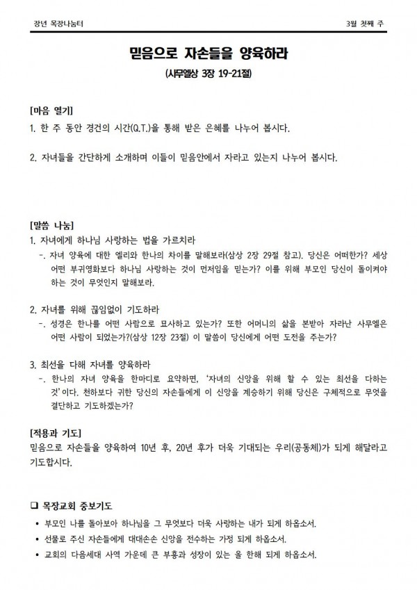2023년 3월 5일 나눔터(목원용) 가야예배당
