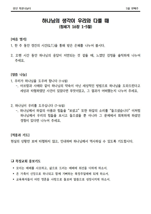 2022년 5월 22일 나눔터(목원용) 센텀예배당