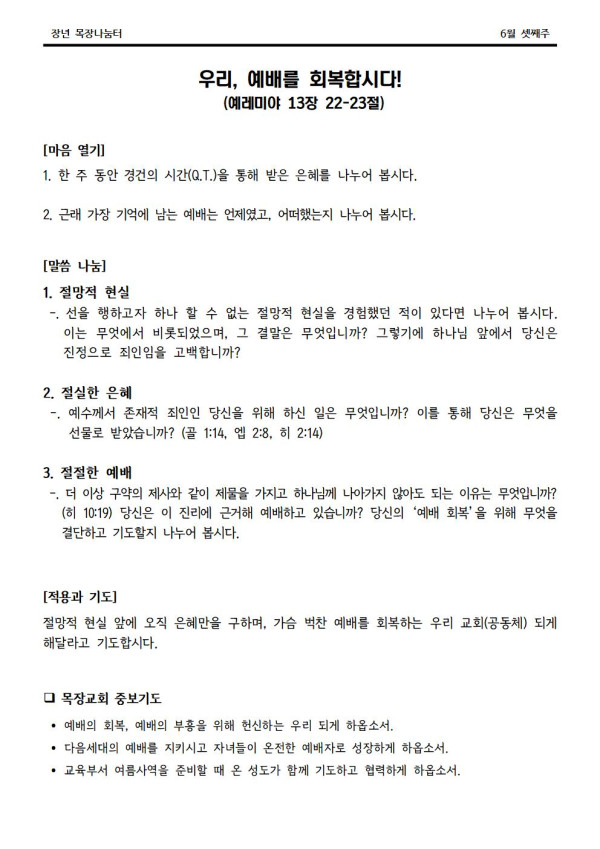 * 2022년 6월 19일 나눔터(목원용) 가야예베당