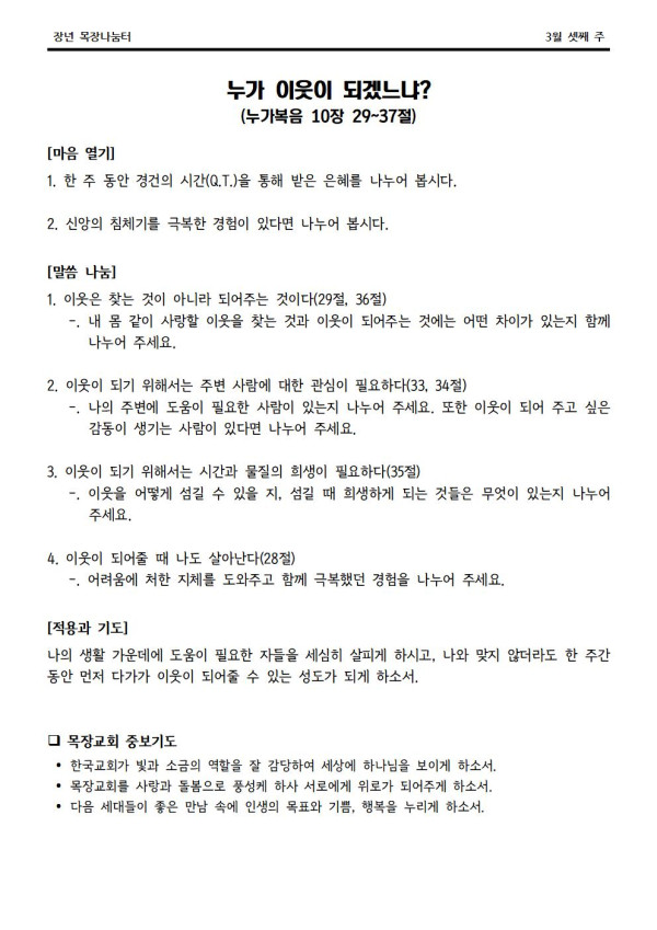 2022년 3월 20일 나눔터(목원용) 센텀예배당