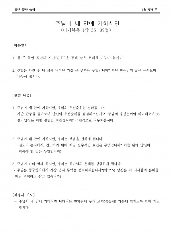 2022년 3월 20일 나눔터(목원용) 가야예배당
