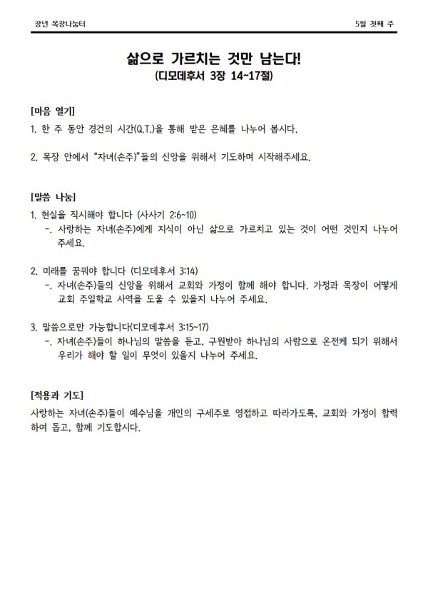 2022년 5월 1일 나눔터(목원용) 센텀예배당