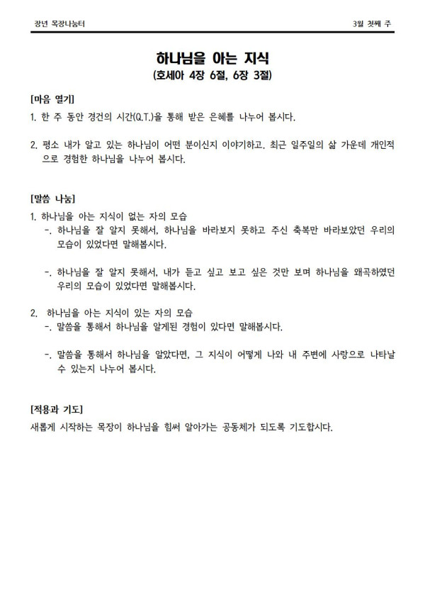 2022년 3월 6일 나눔터(목원용) 센텀예배당