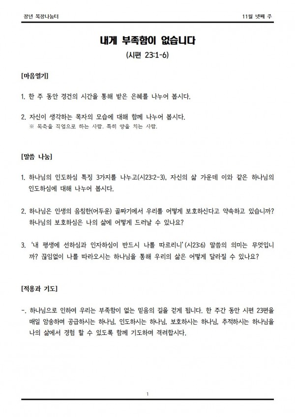 2020년 11월 22일 나눔터(목원용) 센텀예배당