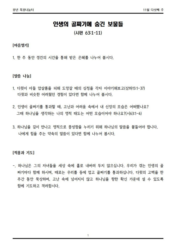 2020년 11월 29일 나눔터(목원용) 센텀예배당
