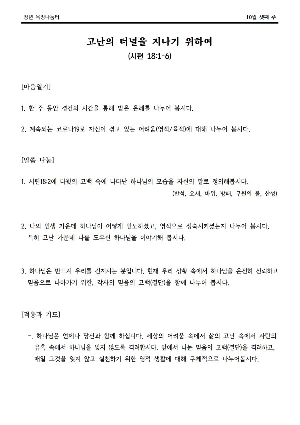 2020년 10월 18일 나눔터(목원용) 센텀예배당