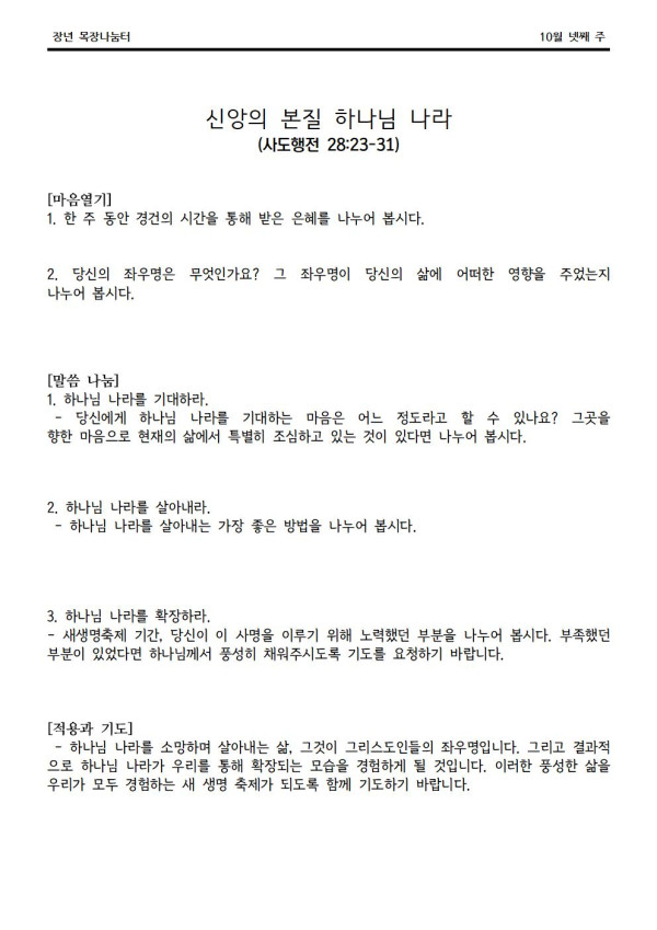 2020년 10월 25일 나눔터(목원용) 가야예배당