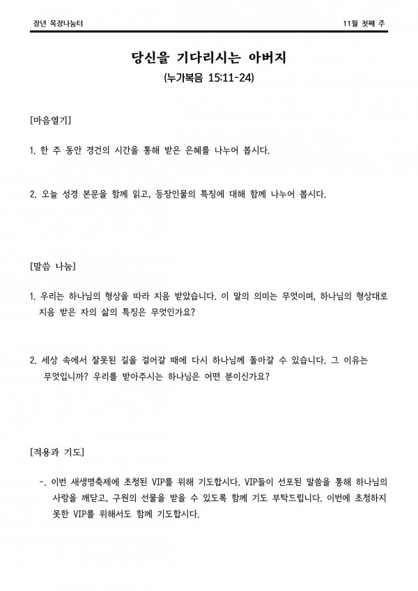 2020년 11월 1일 나눔터(목원용) 센텀예배당