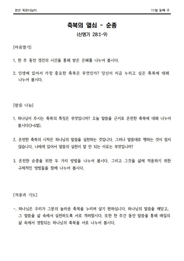 2020년 11월 8일 나눔터(목원용) 센텀예배당