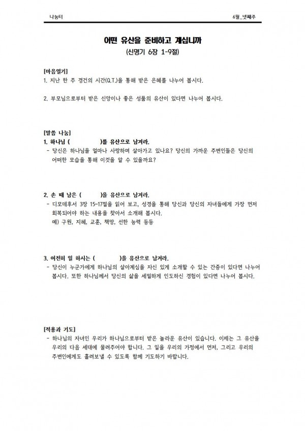 2020년 6월 28일 나눔터(목원용) 가야예배당