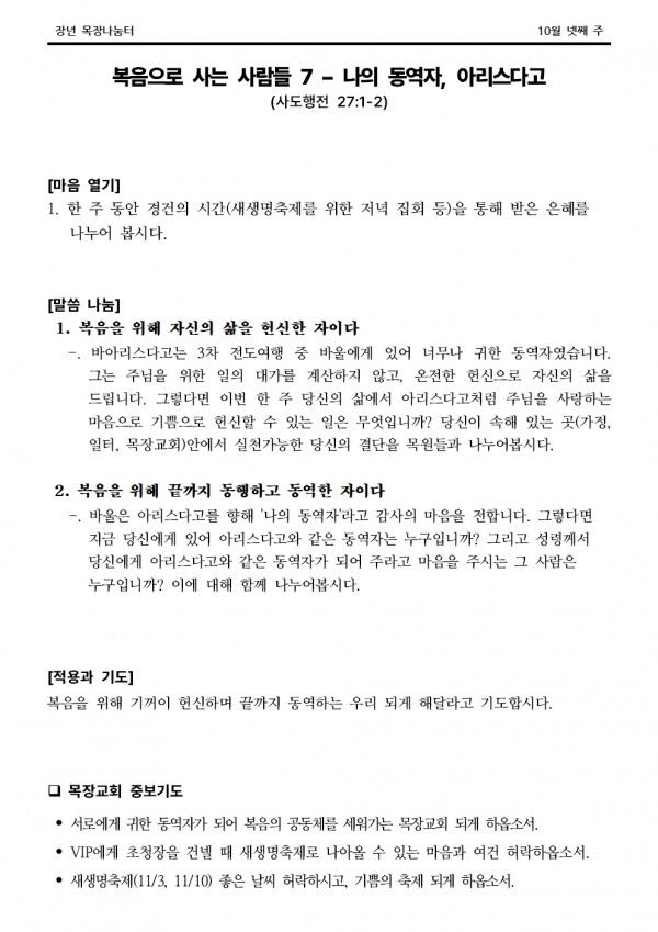 2024년 10월 27일 나눔터(목원용) 가야예배당