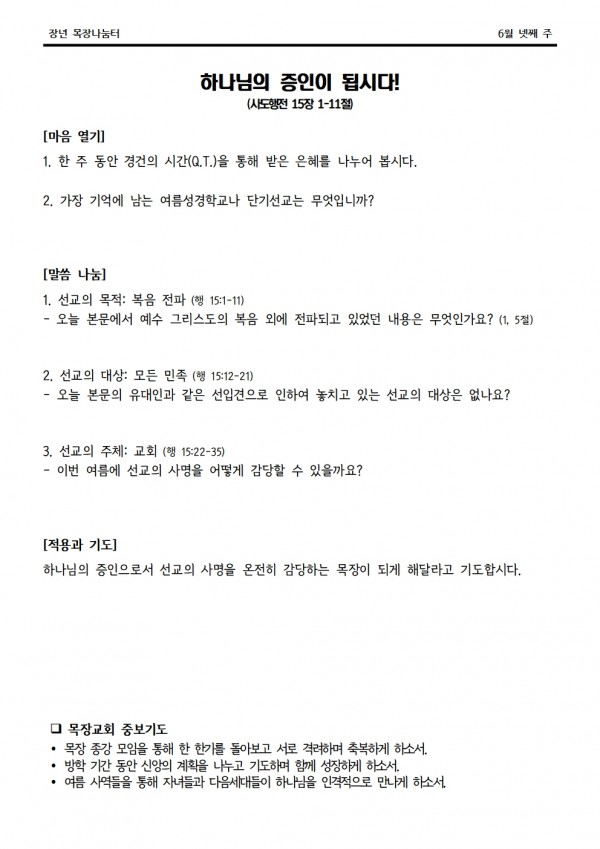 2023년 6월 25일 나눔터(목원용) 센텀예배당