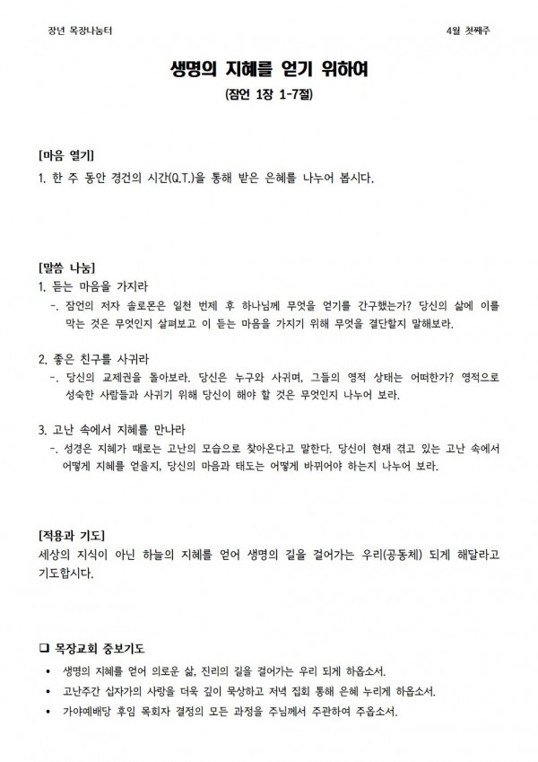 * 2023년 4월 2일 나눔터(목원용) 가야예배당