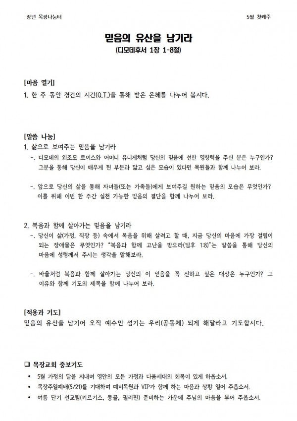 * 2023년 5월 7일 나눔터(목원용) 가야예배당