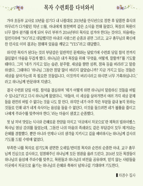 목자 수련회를 다녀와서_차경수 집사