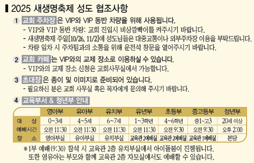 새생명축제 주일 당일 성도 협조사항 안내