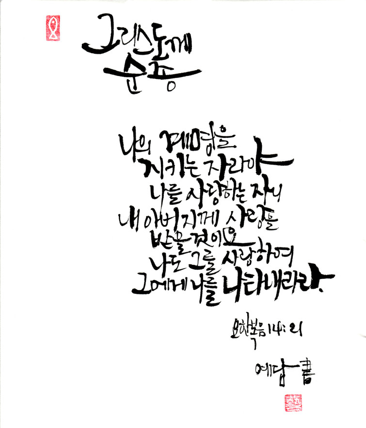 신앙훈련 | "캘리야! 노올자"를 담당하고 있는 손병호집사입니다. 연습작 몇점 올려봅니다. 페이지 정보 작성자 손병호 작성일16-06-14 15:48 조회18,073회 댓글0건 이전글 다음글 목록 본문 몇점의 연습작품 올려봅니다. 댓글목록 등록된 댓글이 없습니다. 이전글 다음글 목록