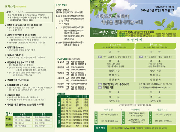 2024년 3월 17일 주보 (가야예배당) 페이지 정보 작성자 관리지기 작성일24-03-16 11:17 조회2,893회 댓글0건 관련링크 목록 본문 2024년 3월 17일 주보 (가야예배당) 댓글목록 등록된 댓글이 없습니다. 목록