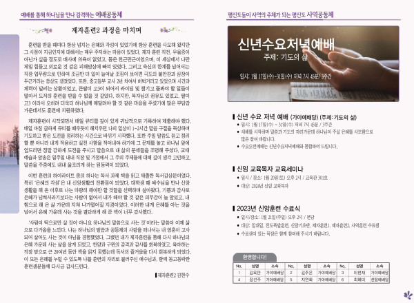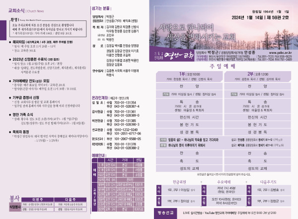 2024년 1월 14일 주보 (가야예배당) 페이지 정보 작성자 관리지기 작성일24-01-13 11:12 조회2,978회 댓글0건 관련링크 목록 본문 2024년 1월 14일 주보 (가야예배당) 댓글목록 등록된 댓글이 없습니다. 목록