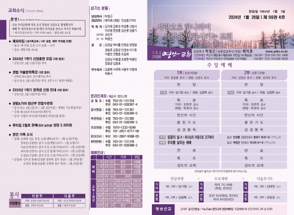 2024년 1월 28일 주보 (센텀예배당) 페이지 정보 작성자 관리지기 작성일24-01-27 11:07 조회2,923회 댓글0건 관련링크 목록 본문 2024년 1월 28일 주보 (센텀예배당) 댓글목록 등록된 댓글이 없습니다. 목록