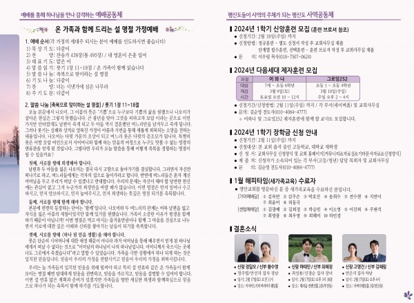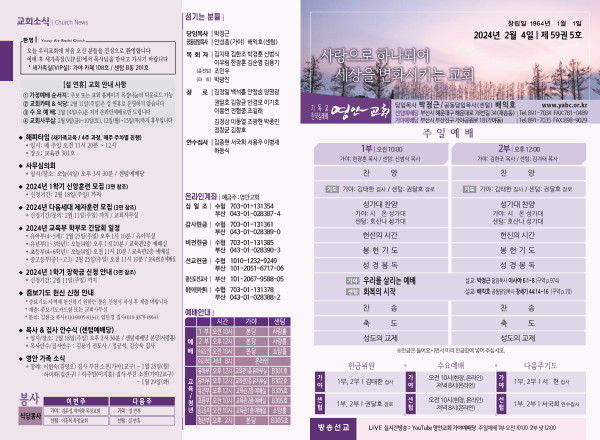 2024년 2월 4일 주보 (가야예배당) 페이지 정보 작성자 관리지기 작성일24-02-03 11:12 조회2,956회 댓글0건 관련링크 목록 본문 2024년 2월 4일 주보 (가야예배당 ) 댓글목록 등록된 댓글이 없습니다. 목록