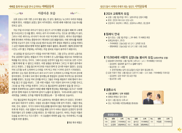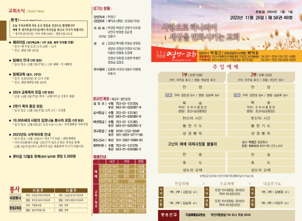 2023년 11월 26일 주보 (센텀예배당) 페이지 정보 작성자 관리지기 작성일23-11-25 11:32 조회3,321회 댓글0건 관련링크 목록 본문 * 2023년 11월 26일 주보 (센텀예배당) 댓글목록 등록된 댓글이 없습니다. 목록