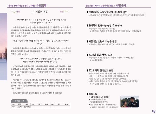2023년 12월 24일 주보 (가야예배당) 페이지 정보 작성자 관리지기 작성일23-12-23 10:52 조회3,230회 댓글0건 관련링크 목록 본문 2023년 12월 24일 주보 (가야예배당) 댓글목록 등록된 댓글이 없습니다. 목록