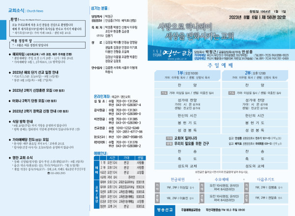 2023년 8월 6일 주보 (가야예배당) 페이지 정보 작성자 관리지기 작성일23-08-05 10:40 조회3,307회 댓글0건 관련링크 목록 본문 * 2023년 8월 6일 주보 (가야예배당) 댓글목록 등록된 댓글이 없습니다. 목록