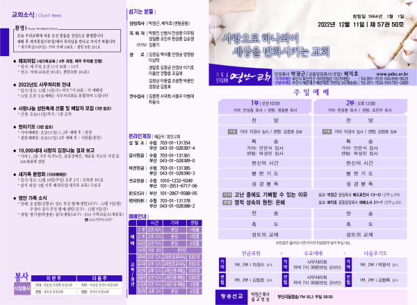 2022년 12월 11일 주보 페이지 정보 작성자 관리지기 작성일22-12-10 11:03 조회4,292회 댓글0건 관련링크 목록 본문 2022년 12월 11일 주보 댓글목록 등록된 댓글이 없습니다. 목록