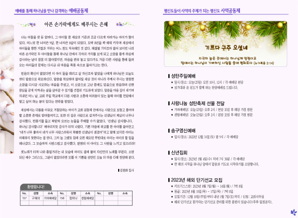 2022년 12월 25일 주보 페이지 정보 작성자 관리지기 작성일22-12-24 10:18 조회4,699회 댓글0건 관련링크 목록 본문 * 2022년 12월 25일 주보 댓글목록 등록된 댓글이 없습니다. 목록