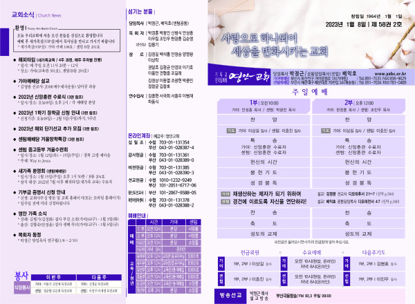 2023년 1월 8일 주보 (센텀예배당) 페이지 정보 작성자 관리지기 작성일23-01-07 11:04 조회4,295회 댓글0건 관련링크 목록 본문 2023년 1월 8일 주보 (센텀예배당) 댓글목록 등록된 댓글이 없습니다. 목록