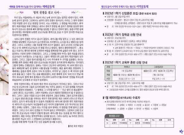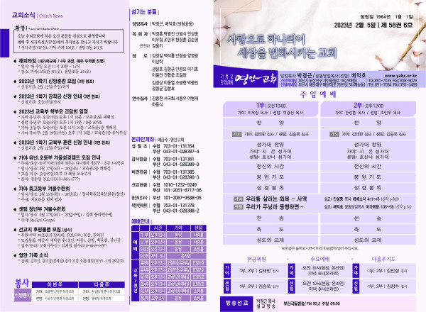 2023년 2월 5일 주보 페이지 정보 작성자 관리지기 작성일23-02-04 11:27 조회4,065회 댓글0건 관련링크 목록 본문 * 2023년 2월 5일 주보 댓글목록 등록된 댓글이 없습니다. 목록