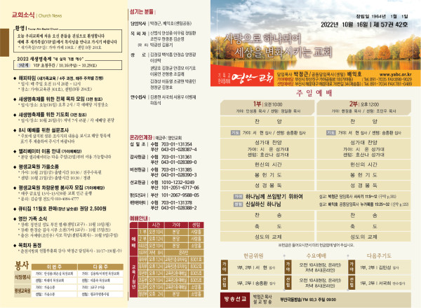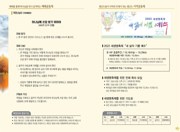 2022년 10월 16일 주보 (가야예배당) 페이지 정보 작성자 관리지기 작성일22-10-15 12:10 조회4,130회 댓글0건 관련링크 목록 본문 * 2022년 10월 16일 주보 (가야예배당) 댓글목록 등록된 댓글이 없습니다. 목록