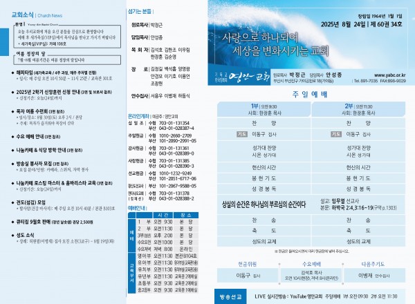2025년 8월 24일 주보 페이지 정보 작성자 관리지기 작성일25-08-23 10:18 조회1,323회 댓글0건 관련링크 목록 본문 2025년 8월 24일 주보 댓글목록 등록된 댓글이 없습니다. 목록