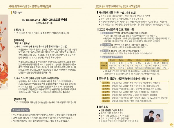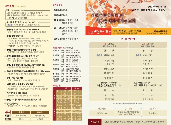 2025년 10월 19일 주보 페이지 정보 작성자 관리지기 작성일25-10-18 10:40 조회1,009회 댓글0건 관련링크 목록 본문 2025년 10월 19일 주보 댓글목록 등록된 댓글이 없습니다. 목록