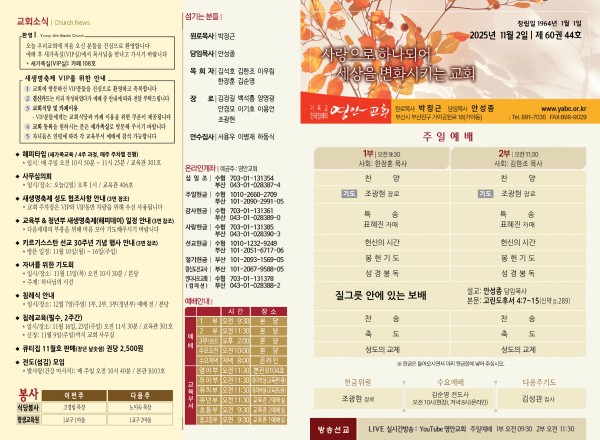 2025년 11월 2일 주보 페이지 정보 작성자 관리지기 작성일25-11-01 10:56 조회914회 댓글0건 관련링크 목록 본문 2025년 11월 2일 주보 댓글목록 등록된 댓글이 없습니다. 목록
