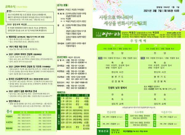 2021년 3월 7일 주보 페이지 정보 작성자 관리지기 작성일21-03-06 11:10 조회6,905회 댓글0건 관련링크 목록 본문 2021년 3월 7일 주보 댓글목록 등록된 댓글이 없습니다. 목록