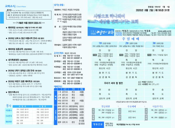 2020년 8월 2일 주보 페이지 정보 작성자 관리지기 작성일20-08-01 11:37 조회7,935회 댓글0건 관련링크 목록 본문 2020년 8월 2일 주보 댓글목록 등록된 댓글이 없습니다. 목록