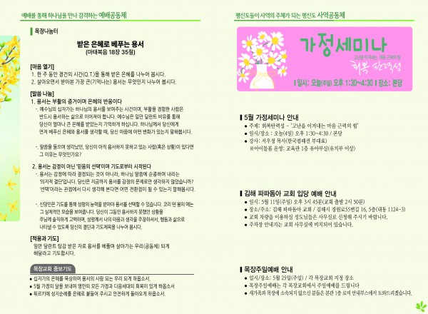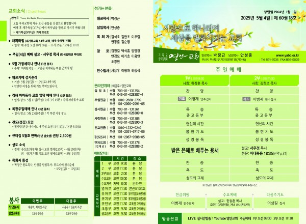 2025년 5월 4일 주보 페이지 정보 작성자 관리지기 작성일25-05-03 09:35 조회1,810회 댓글0건 관련링크 목록 본문 2025년 5월 4일 주보 댓글목록 등록된 댓글이 없습니다. 목록