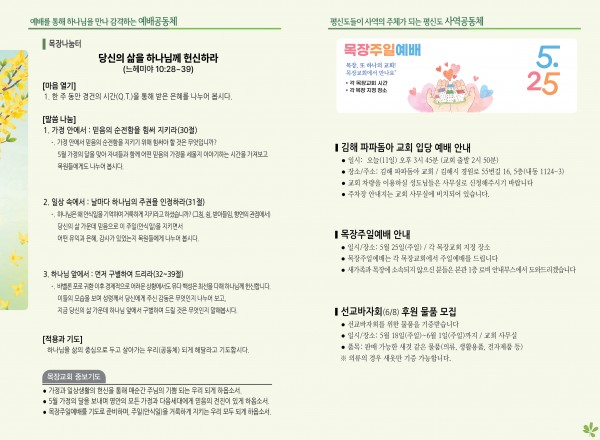 2025년 5월 11일 주보 페이지 정보 작성자 관리지기 작성일25-05-10 09:35 조회1,815회 댓글0건 관련링크 목록 본문 2025년 5월 11일 주보 댓글목록 등록된 댓글이 없습니다. 목록