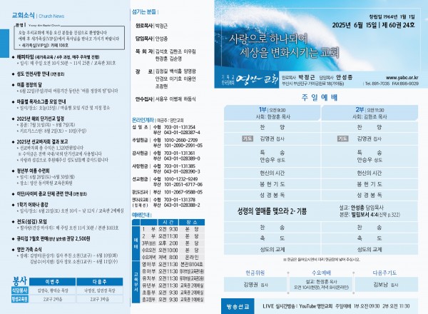 2025년 6월 15일 주보 페이지 정보 작성자 관리지기 작성일25-06-14 10:25 조회1,612회 댓글0건 관련링크 목록 본문 2025년 6월 15일 주보 댓글목록 등록된 댓글이 없습니다. 목록