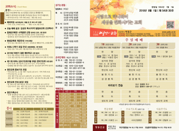 2019년 9월 1일 주보 페이지 정보 작성자 관리지기 작성일19-08-31 11:46 조회8,971회 댓글0건 관련링크 목록 본문 [2019년 9월 1일 주보] 댓글목록 등록된 댓글이 없습니다. 목록