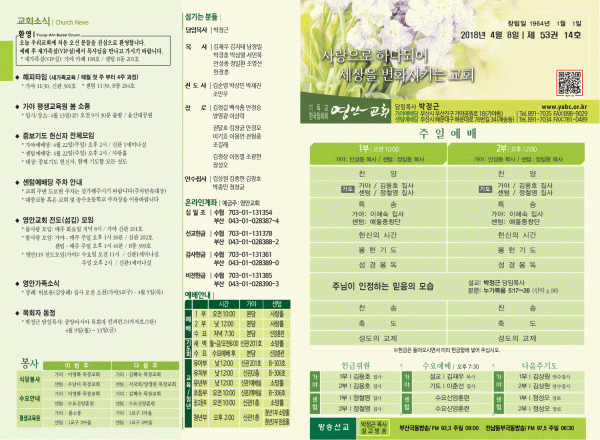 2018년 4월 8일 주보 페이지 정보 작성자 관리지기 작성일18-04-07 12:32 조회10,450회 댓글0건 관련링크 목록 본문 [2018년 4월 8일 주보] 댓글목록 등록된 댓글이 없습니다. 목록