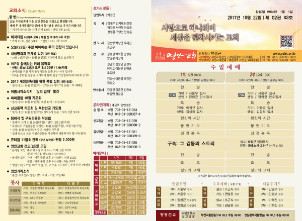 2017년 10월 22일 주보 페이지 정보 작성자 관리지기 작성일17-10-21 11:42 조회14,463회 댓글0건 관련링크 목록 본문 2017년 10월 22일 주보 댓글목록 등록된 댓글이 없습니다. 목록
