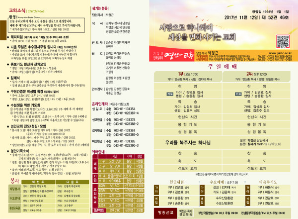 2017년 11월 12일 주보 페이지 정보 작성자 관리지기 작성일17-11-11 11:37 조회13,971회 댓글0건 관련링크 목록 본문 2017년 11월 12일 주보 댓글목록 등록된 댓글이 없습니다. 목록