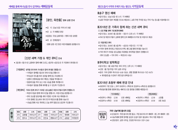 2017년 12월 31일 주보 페이지 정보 작성자 관리지기 작성일17-12-30 12:14 조회15,010회 댓글0건 관련링크 목록 본문 2017년 12월 31일 주보 댓글목록 등록된 댓글이 없습니다. 목록