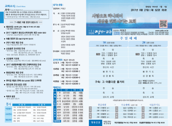 2017년 8월 27일 주보 페이지 정보 작성자 관리지기 작성일17-08-26 11:18 조회14,037회 댓글0건 관련링크 목록 본문 2017년 8월 27일 주보 댓글목록 등록된 댓글이 없습니다. 목록