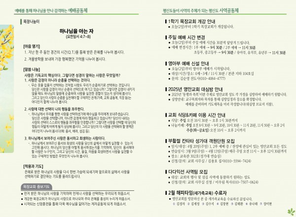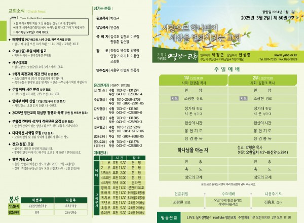 2025년 3월 2일 주보 페이지 정보 작성자 관리지기 작성일25-02-28 15:31 조회1,932회 댓글0건 관련링크 목록 본문 2025년 3월 2일 주보 댓글목록 등록된 댓글이 없습니다. 목록