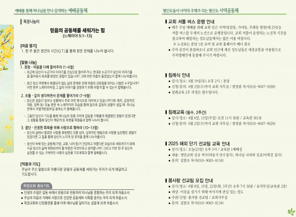 2025년 3월 23일 주보 페이지 정보 작성자 관리지기 작성일25-03-22 11:15 조회1,780회 댓글0건 관련링크 목록 본문 2025년 3월 23일 주보 댓글목록 등록된 댓글이 없습니다. 목록