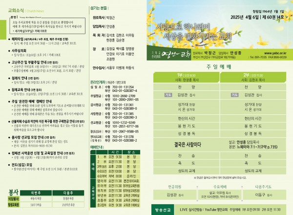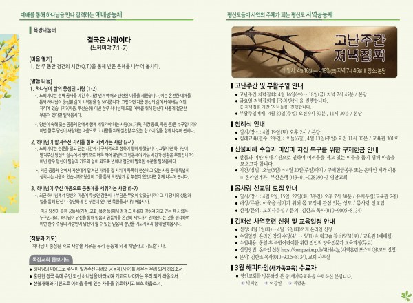 2025년 4월 6일 주보 페이지 정보 작성자 관리지기 작성일25-04-05 11:01 조회1,925회 댓글0건 관련링크 목록 본문 2025년 4월 6일 주보 댓글목록 등록된 댓글이 없습니다. 목록